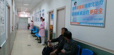 胡女士在走廊候诊时和病友讨论病情和治疗效果